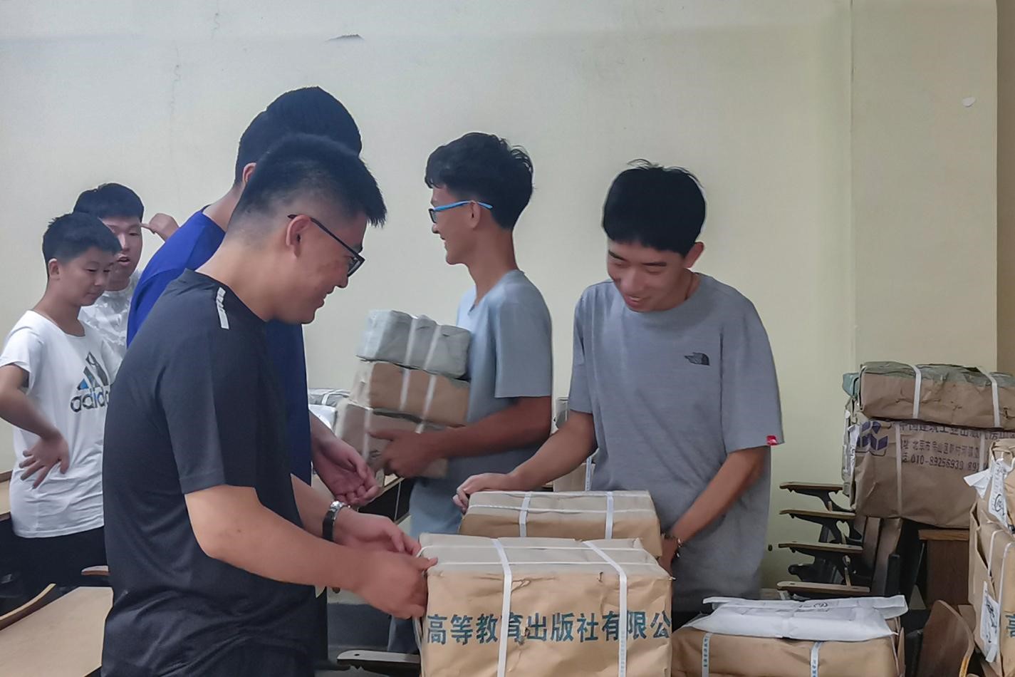 8月28日,伟德bv官网教材发放工作在5#103、104有序进行。