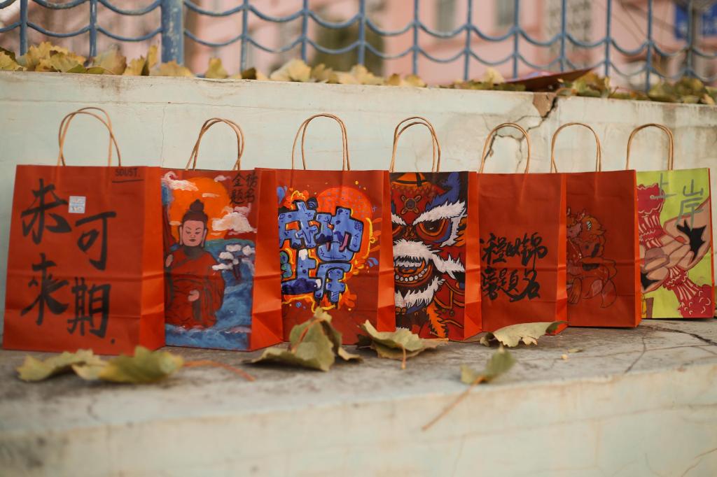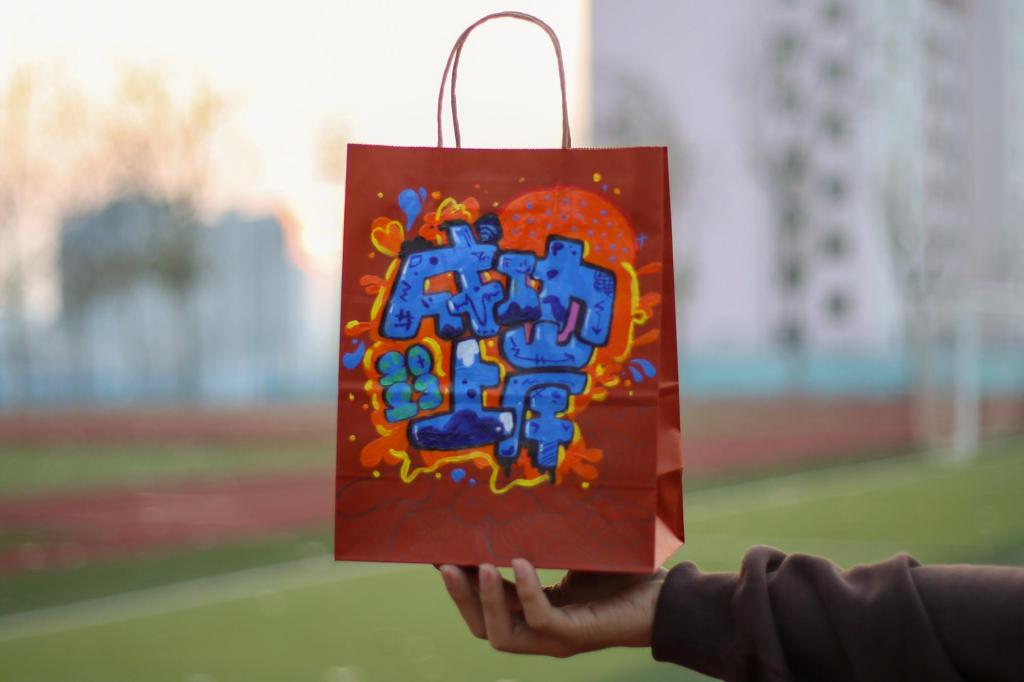 前期筹备阶段,学院面向低年级学生开展福袋彩绘征集活动,学弟学妹们认真勾勒、绘画、点缀,可爱的卡通人物、富有美感的艺术字、一句句手写的真挚祝福绘在一个个福袋上,饱含了对考研学子的深深祝福。苹果象征着“苹”安上岸,香橙代表着心想事“橙”,文具套装助力学业有成,暖宝宝为夜读学子提供温暖,糖果的酸甜映照考研路上的艰辛与收获……一件件寓意丰富、心意满满的物品连同暖心祝愿被塞进了小小的福袋。