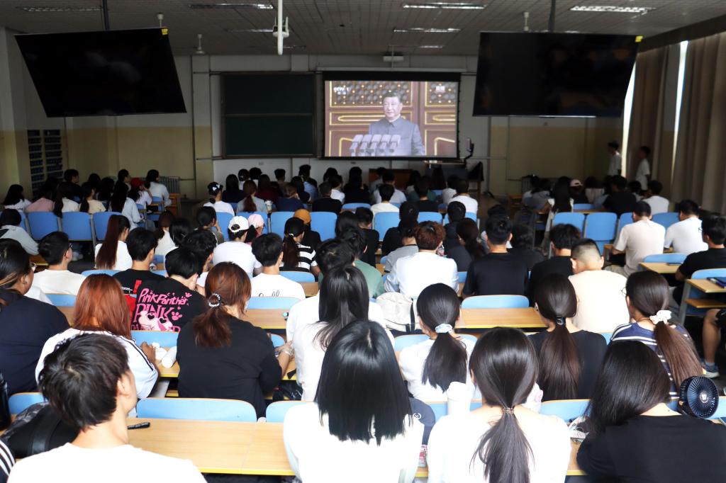 观看阅兵式后,各班级立即组织“铭记历史,强国有我”主题班会。同学们纷纷表示,将以此次观看阅兵式为契机,铭记历史、珍爱和平,把激荡的爱国热情转化为刻苦学习、矢志报国的实际行动,以新时代青年的担当为强国建设贡献力量。(文:何爽    图:郝敬如)