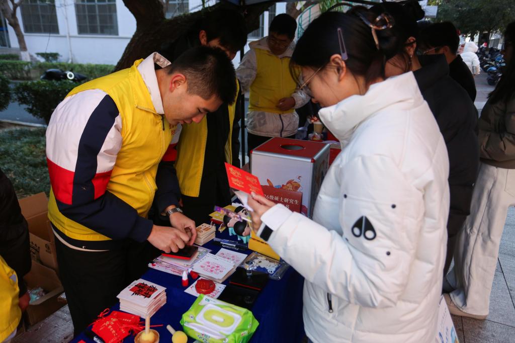 活动以“红绳盲盒”与幸运小兽立牌为载体,将祝福转化为可触摸的温暖。同学们在许愿牌上写下“此程必上岸”等心愿与祝福,抽取装有定制文创、文具或零食的盲盒礼包;现场提供的限定明信片及棒棒糖,也让备考的疲惫在甜意中悄然消散。不少考研学子驻足拍照,将这份来自学院的牵挂与鼓励,定格为奋斗时光里的温暖印记。