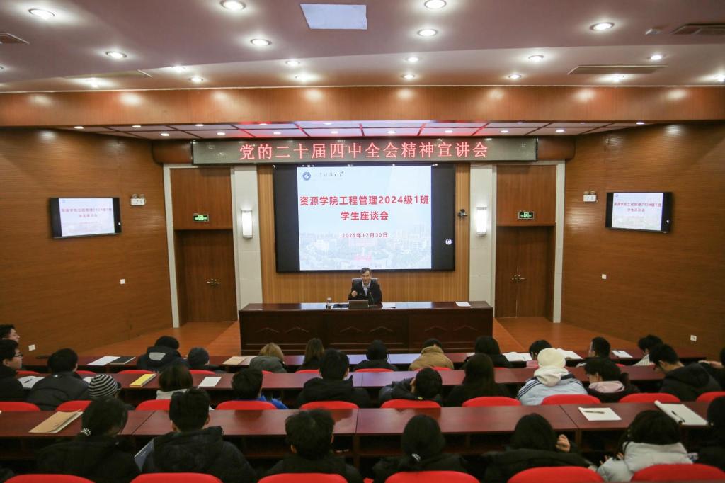为深入学习贯彻党的二十届四中全会精神,精准把握“十五五”时期国家发展战略与教育事业前进方向,12月30日,校区领导戴东宝在八角楼为工程管理2024级1班宣讲党的二十届四中全会精神并召开座谈会。