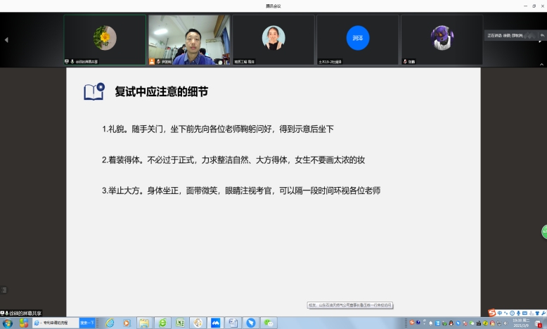 3月9日,伟德bv官网在线上召开考研复试交流会。会议由伟德bv官网辅导员尹发利主持,学院学子积极参加。