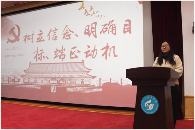 11月18日,伟德bv官网学生第一党支部书记卢业美在四号楼报告厅为学院第35期入党积极分子讲授“树立信念、明确目标、端正动机”专题党课。
