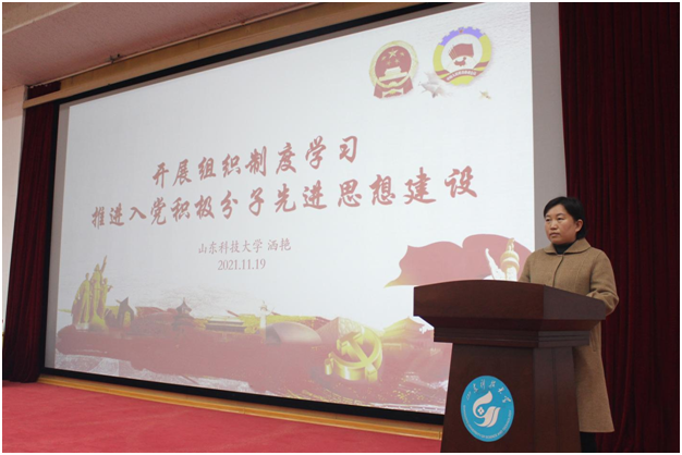 11月19日,伟德bv官网学生第二党支部书记洒艳在四号楼报告厅为学院第35期入党积极分子讲授“开展组织制度学习,推进入党积极分子先进思想建设”专题党课。