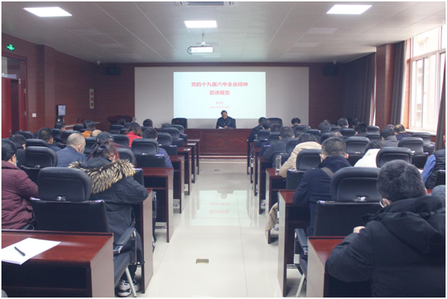 会上,高尚宇围绕深刻认识召开十九届六中全会、全会审议通过的《中共中央关于党的百年奋斗重大成就和历史经验的决议》的重大意义,从“总结党的百年奋斗重大成就和历史经验的重大意义”“党的百年奋斗的初心使命和重大成就”“中国特色社会主义新时代的历史性成就和历史性变革”“党的百年奋斗的历史意义和历史经验”“以史为鉴开创未来的重要要求”“从党的百年奋斗历程中汲取智慧和力量”六个方面对党的十九届六中全会精神进行了全面系统阐释和深刻解读。他强调,学院全体师生要继续深入学习贯彻党的十九届六中全会精神,自觉把思想和行动统一到全会精神上来,把心思和精力凝聚到落实全会作出的重大决策部署上来,持续增强“四个意识”、坚定“四个自信”、做到“两个维护”,以更加昂扬的姿态迈进新征程、建功新时代。