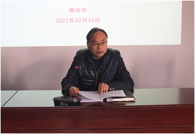 12月14日,伟德bv官网党委书记高尚宇为学院全体教职工和联系班级工程管理2021级1班学生宣讲党的十九届六中全会精神。
