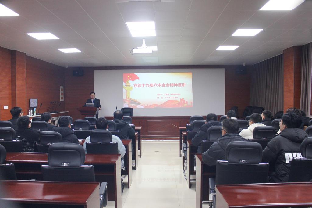 12月28日,伟德bv官网院长王清标在2号楼201会议室为学院研究生及所联系的本科班级学生代表宣讲党的十九届六中全会精神。