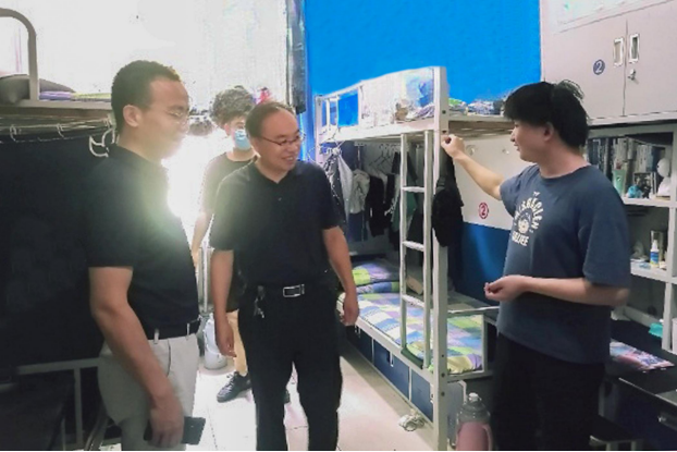 6月21日,伟德bv官网党委书记高尚宇,党委副书记、副院长程家国带队辅导员一行深入学生宿舍开展走访慰问活动,深入了解近期高温天气下学生的学习、生活情况,并要求全体辅导员全力做好本学期学生在校期间正常学习、生活的各项服务保障工作。