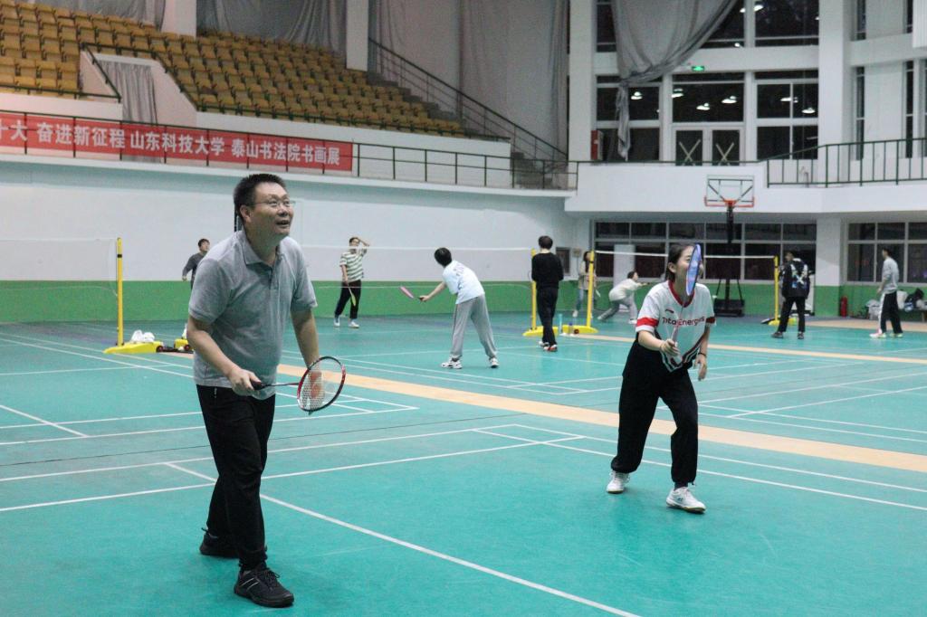 赛前,师生通过抽签组成双打队伍,共同热身备赛。比赛正式开始,双方选手迅速进入状态,师生间配合默契,勇于拼搏,扣杀、轻吊、跳杀、网前截杀,为观众呈现了一场场精彩的比赛。赛场上,双方选手见招拆招,享受着比赛的乐趣,展现了校区师生团结拼搏的体育精神,赛出了风格,赛出了水平。