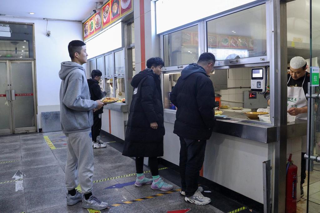 餐厅里一片热闹与祥和。食堂工作人员早早做好准备,提供上热气腾腾的饭菜,营造起温馨的生活环境。同学们品尝着阔别已久的美味佳肴,脸上洋溢着熟悉的微笑。