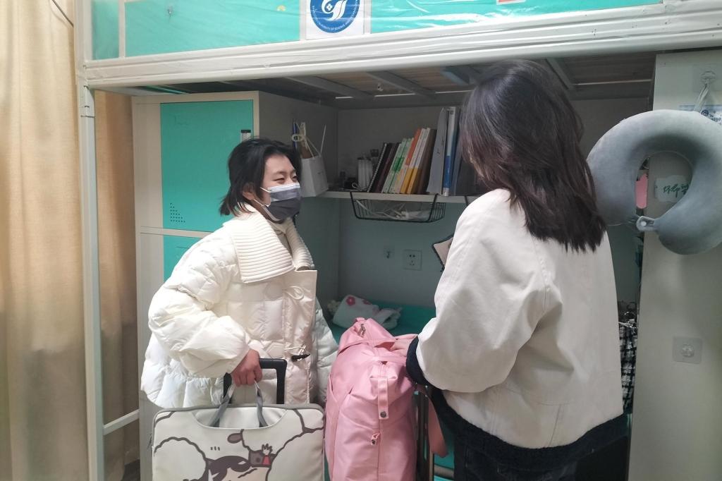 宿舍内充满了快乐的气息。久别重逢,舍友或互帮互助整理行李,或讨论课程问题,或分享假期中的趣事乐闻,冲淡了归途跋涉的劳累,将喜悦相逢的心紧紧串在一起。