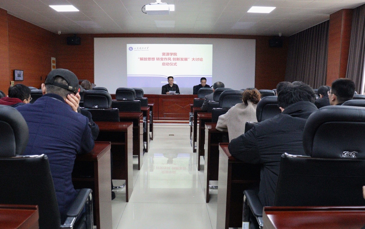 3月21日,伟德bv官网在2号楼201会议室举办“解放思想 转变作风 创新发展”大讨论活动启动仪式。学院院长王清标出席会议并作动员讲话,学院党委副书记、副院长程家国主持会议,学院全体教职工参加。