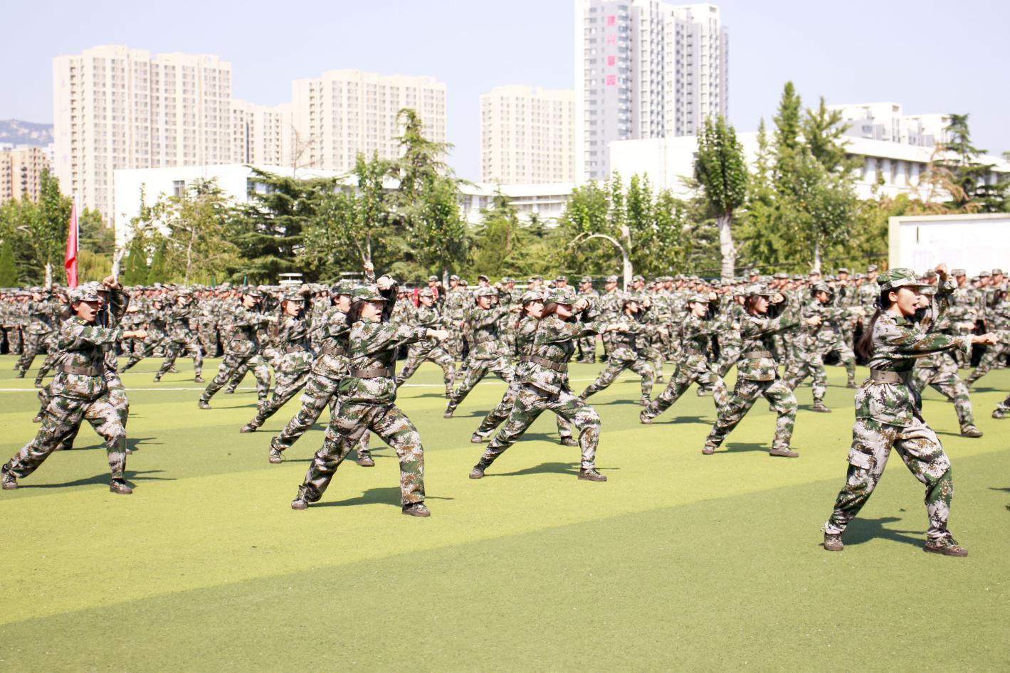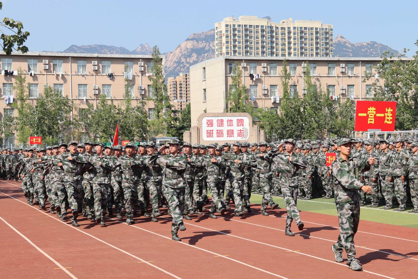 9月15日,伟德bv官网在西校园操场参加校区2023级新生军训闭训仪式。