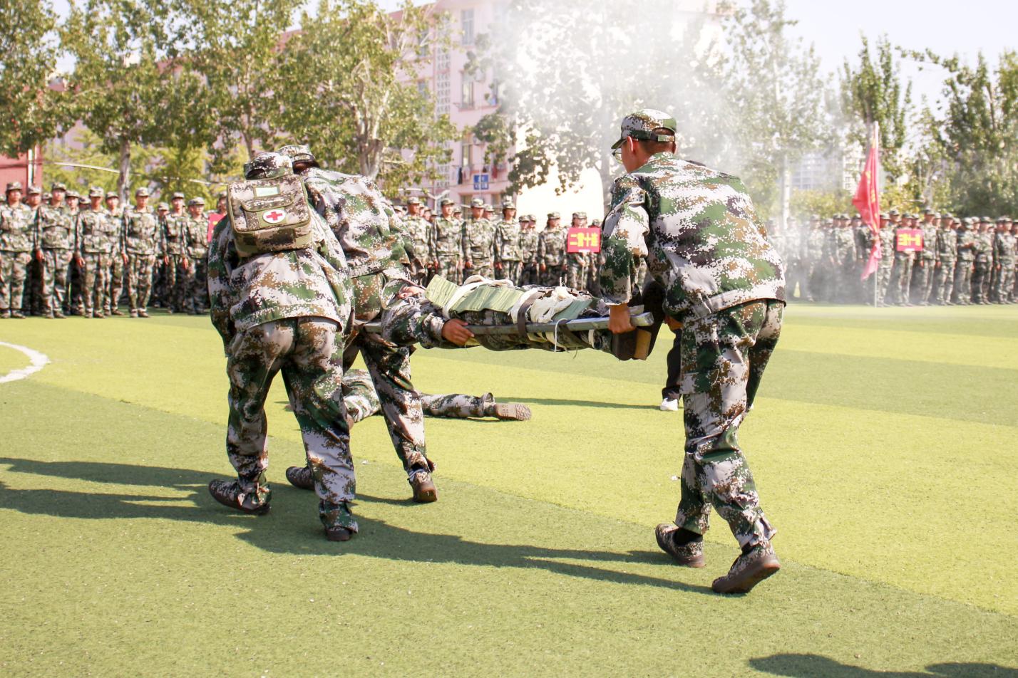 闭训仪式上,伴随着激昂的分列式进行曲,伟德bv官网受阅方队眼神坚定,踏步整齐有力,口号铿锵,走过主席台前接受检阅,展示了资源学子坚韧不拔、奋勇进取的卓然气概。展示环节,新生三连表演军体拳,教官发出指令后,全体同学迅速进入状态,队列整齐划一,招式凌厉,气势磅礴,飒爽的英姿充分体现了资源新生朝气蓬勃、昂扬向上的精神风貌;新生一连示范战地医疗救护,将战场上的救死扶伤的情景演绎得淋漓尽致。伟德bv官网防灾减灾科学与工程2023级1班陈学烨代表新生上台发言。